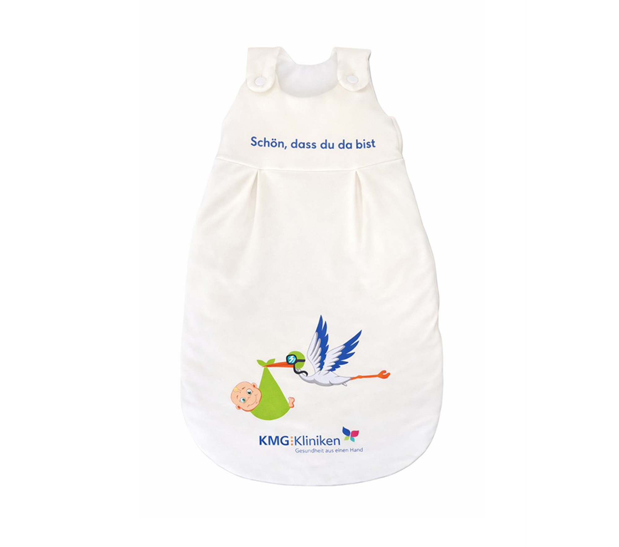 Mit individuellen Motiven und Logo wird der Schlafsack zum emotionalen Werbeträger und macht den Schlaf des Babys noch viel angenehmer.